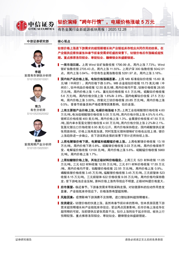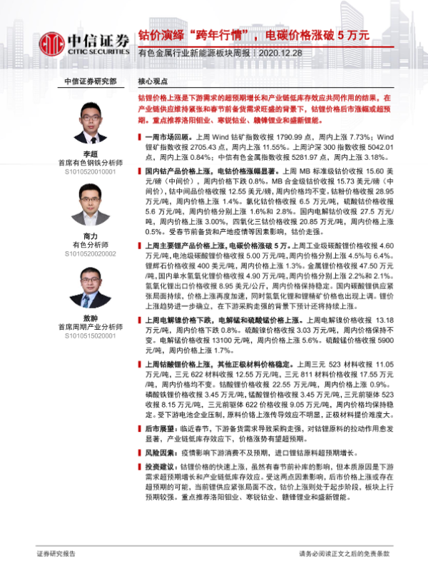 【中信证券】【20201228】20201228-中信证券-有色金属行业新能源板块周报:钴价演绎“跨年行情“,电碳价格涨破5万元-16页