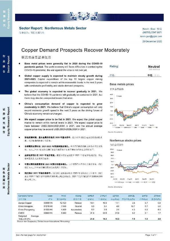【国泰君安证券】【20201229】有色金属行业:铜需求前景温和复苏-7页