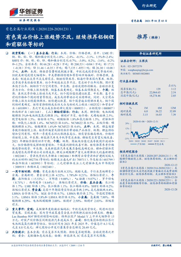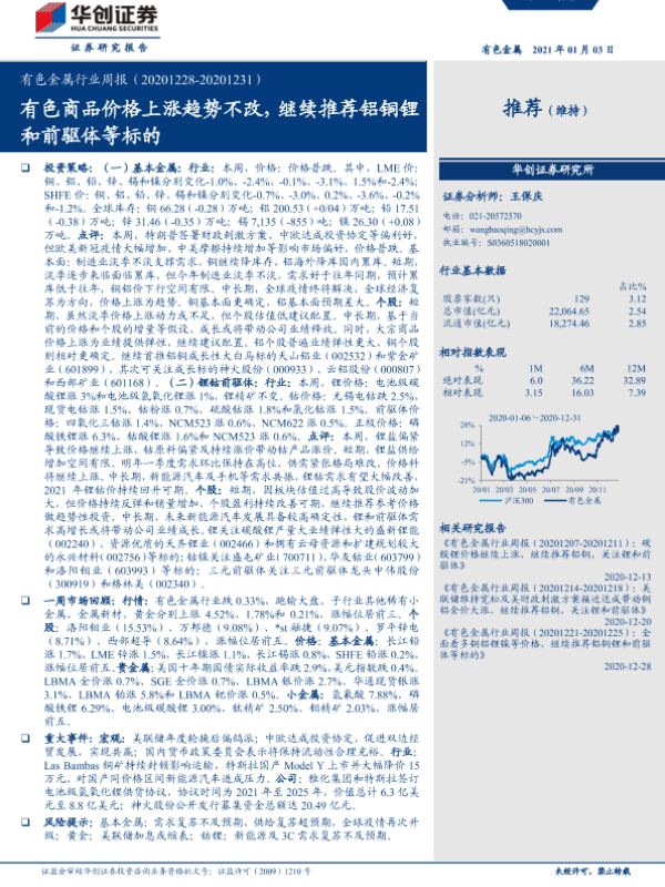 【华创证券】【20210103】20210103-华创证券-有色金属行业周报:有色商品价格上涨趋势不改,继续推荐铝铜锂和前驱体等标的-19页