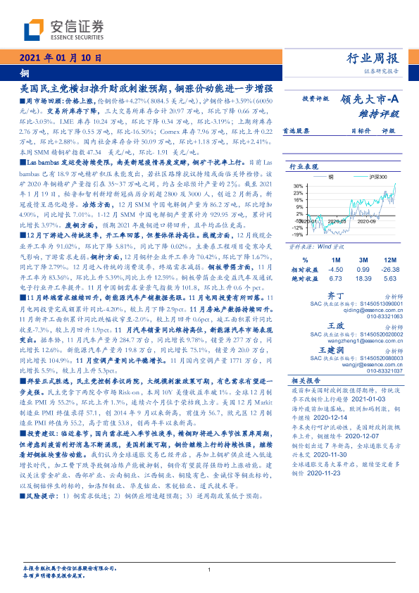 【安信证券】【20210110】20210110-安信证券-铜行业周报:美国民主党横扫推升财政刺激预期,铜涨价动能进一步增强-17页