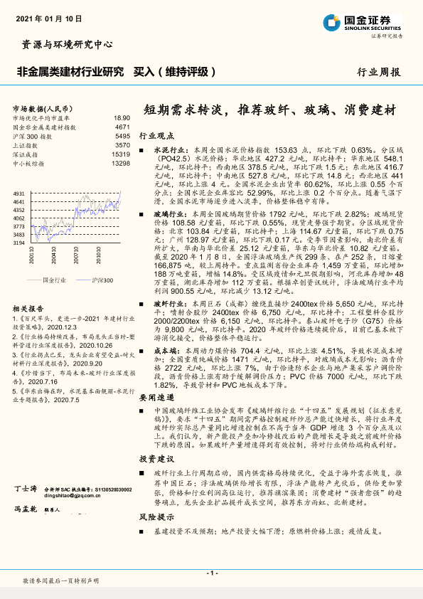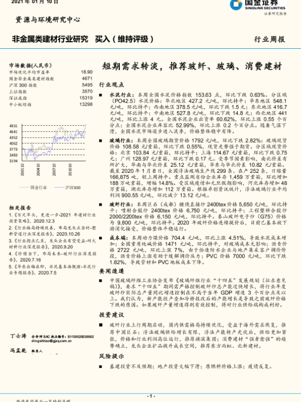 【国金证券】【20210110】20210110-国金证券-非金属类建材行业研究:短期需求转淡,推荐玻纤、玻璃、消费建材-7页