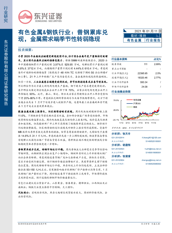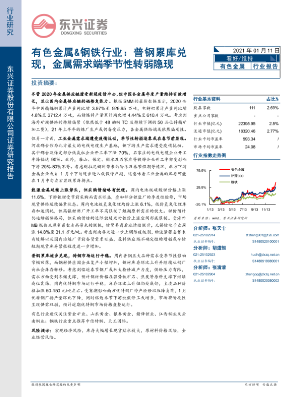【东兴证券】【20210111】有色金属&钢铁行业:普钢累库兑现,金属需求端季节性转弱隐现-24页