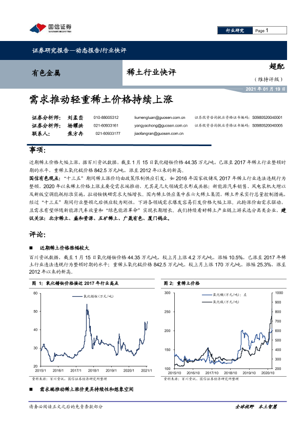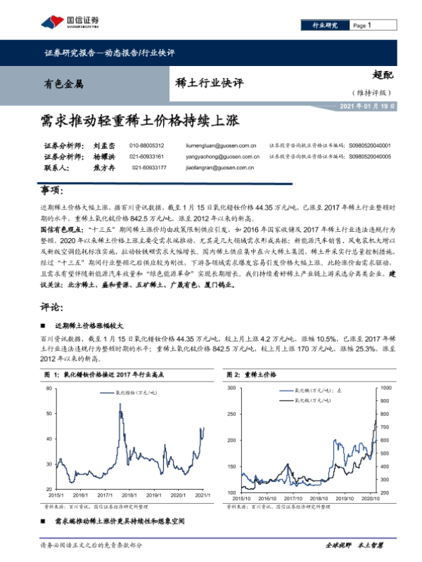 【国信证券】【20210119】有色金属稀土行业快评:需求推动轻重稀土价格持续上涨-6页