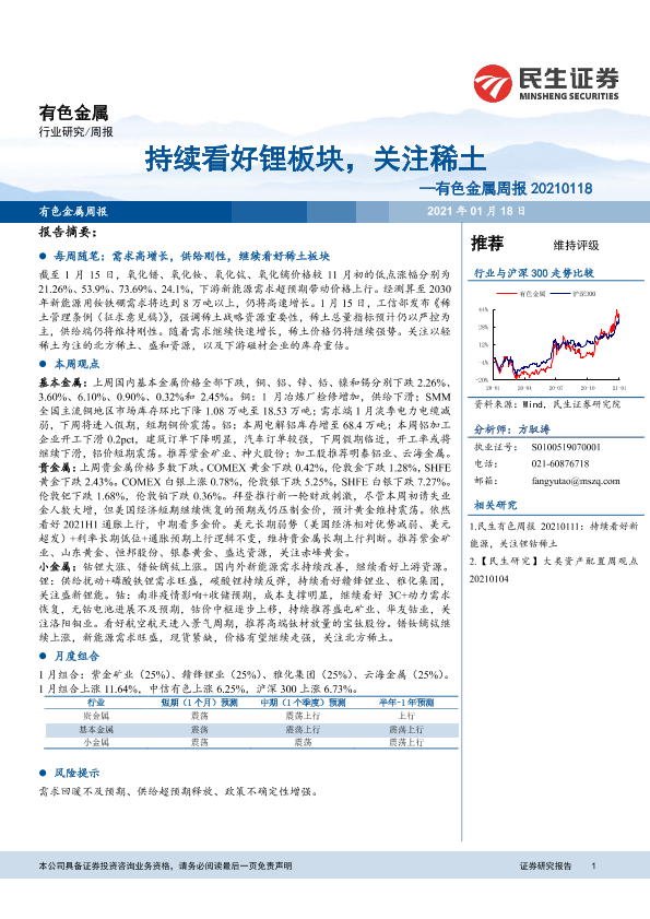 【民生证券】【20210118】20210118-民生证券-有色金属周报:持续看好锂板块,关注稀土-18页