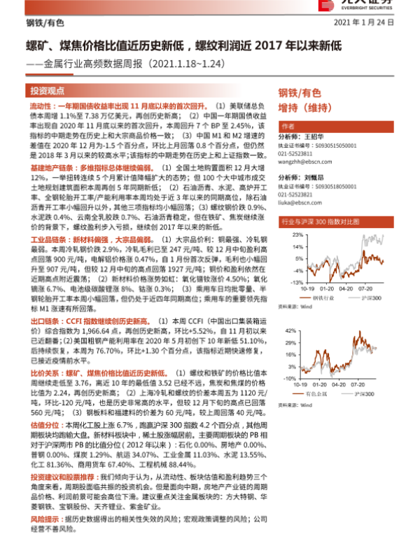 【光大证券】【20210124】金属行业高频数据周报:螺矿、煤焦价格比值近📐历史新低,螺纹利润近2017年以来新低-17页
