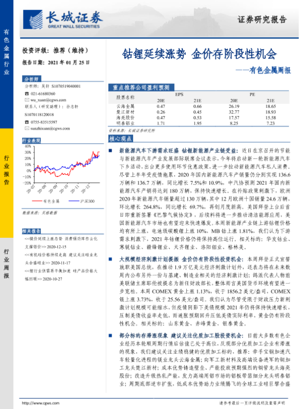 【长城证券】【20210125】20210125-长城证券-有色金属周报:钴锂延续涨势 金价存阶段性机会-12页