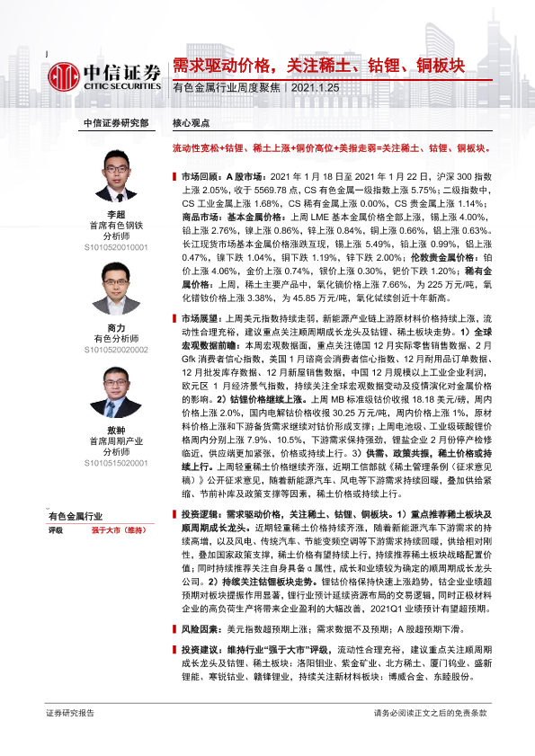 【中信证券】【20210125】20210125-中信证券-有色金属行业周度聚焦:需求驱动价格,关注稀土、钴锂、铜板块-18页