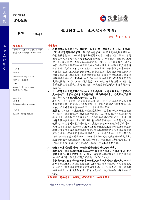 【兴业证券】【20210127】有色金属:锂价快速上行,未来空间如何看?-19页