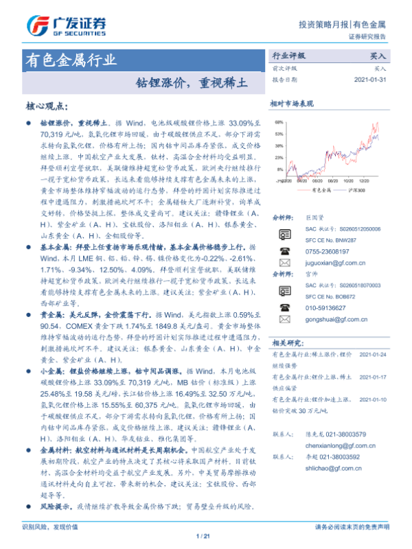 【广发证券】【20210131】20210131-广发证券-有色金属行业投资策略月报:钴锂涨价,重视稀土-21页