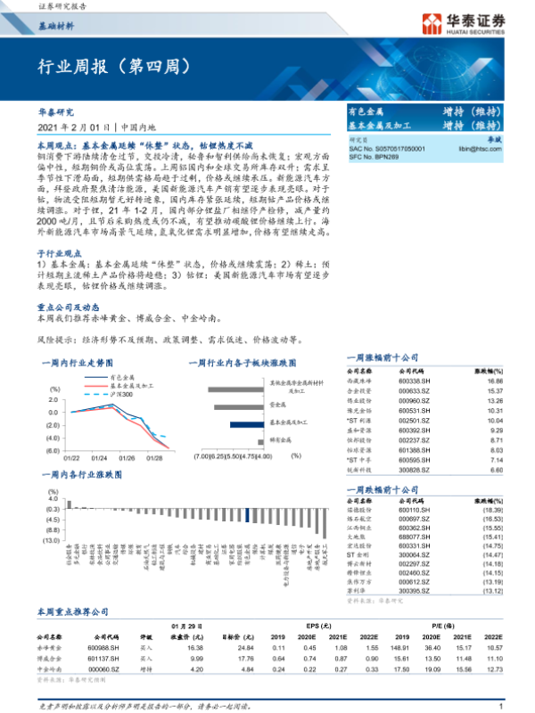 【华泰证券】【20210201】20210201-华泰证券-有色金属行业周报(第四周)-17页