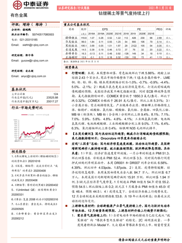 【中泰证券】【20210131】中泰证券-有色金属行业周报:钴锂稀土等景气度持续上行-42页