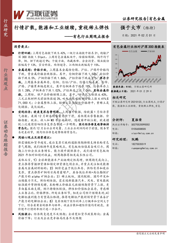 【万联证券】【20210201】20210201-万联证券-有色行业周观点报告:行情扩散,能源和工业继续,重视稀土弹性-10页