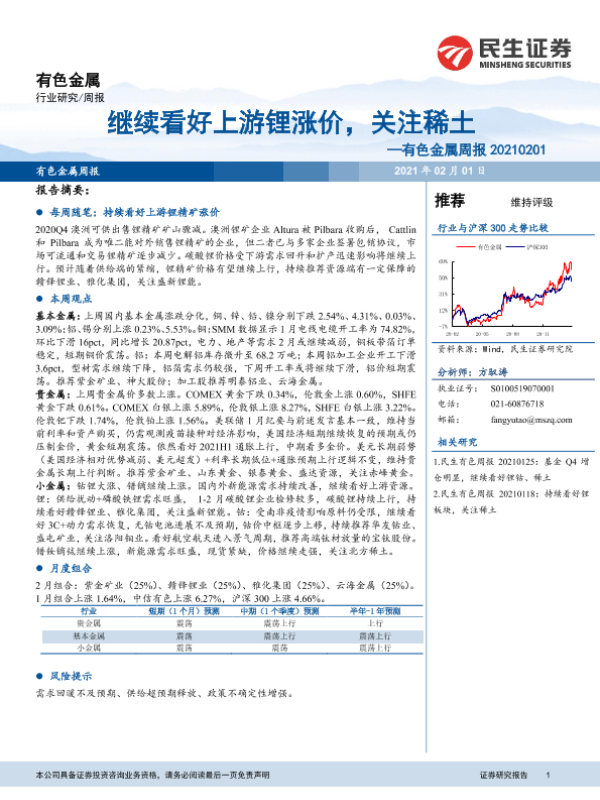 【民生证券】【20210201】20210201-民生证券-有色金属周报:继续看好上游锂涨价,关注稀土-18页