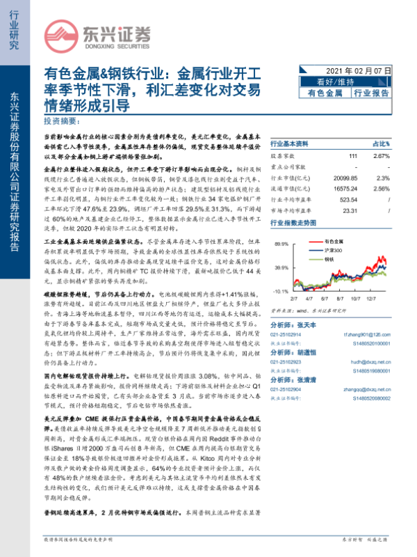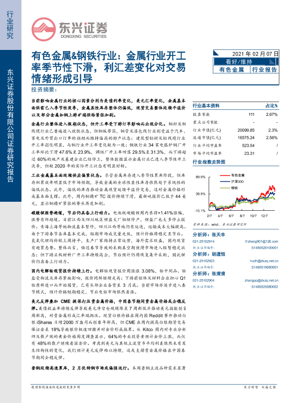 【东兴证券】【20210207】有色金属&钢铁行业:金属行业开工率季节性下滑,利汇差变化对交易情绪形成引导-25页