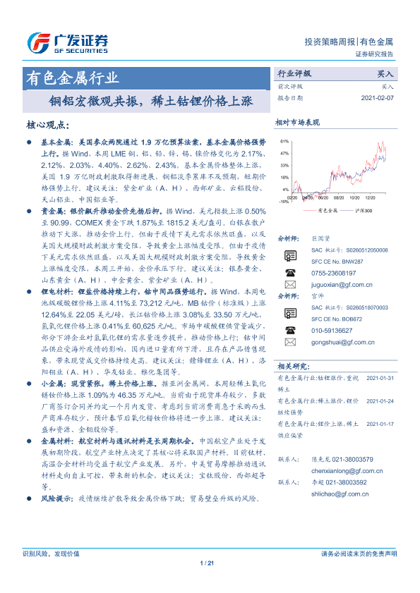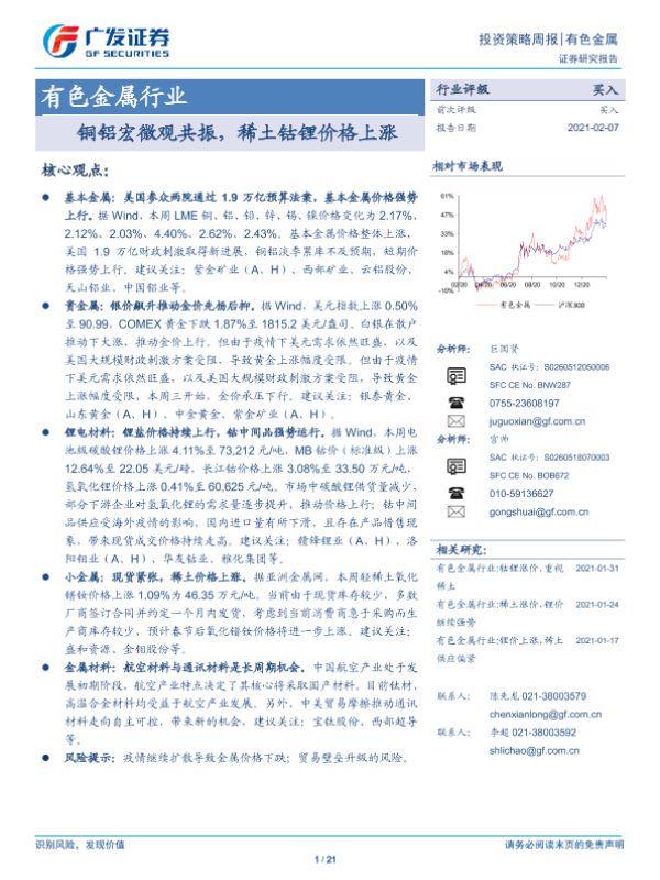 【广发证券】【20210207】20210207-广发证券-有色金属行业投资策略周报:铜铝宏微观共振,稀土钴锂价格上涨-21页