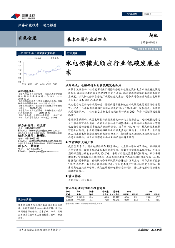 【国信证券】【20210209】基本金属行业周观点:水电铝模式顺应行业低碳发展要求-6页