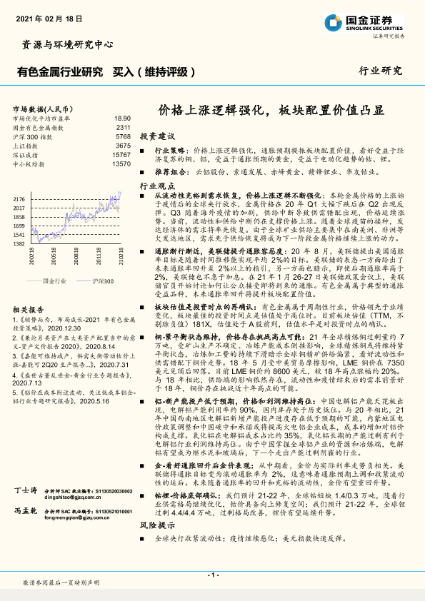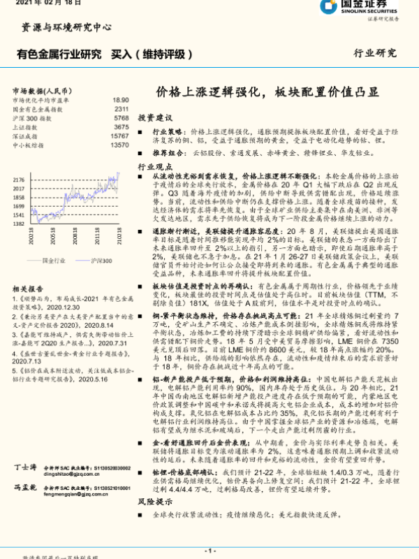 【国金证券】【20210218】20210218-国金证券-有色金属行业研究:价格上涨逻辑强化,板块配置价值凸显-3页