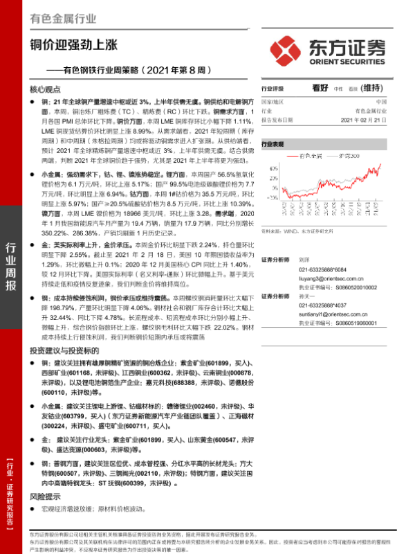 【东方证券】【20210221】20210221-东方证券-有色钢铁行业周策略(2021年第8周):铜价迎强劲上涨-28页
