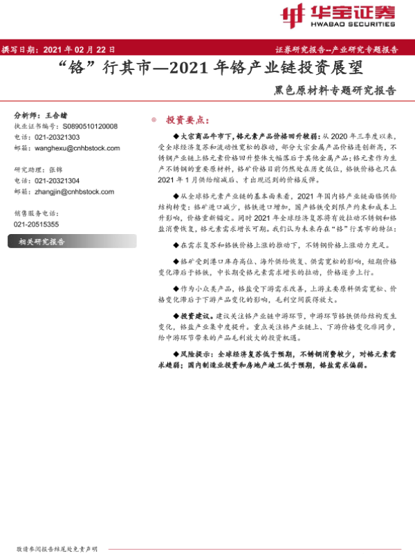 【华宝证券】【20210222】“铬”行其市-2021年铬产业链投资展望-26页