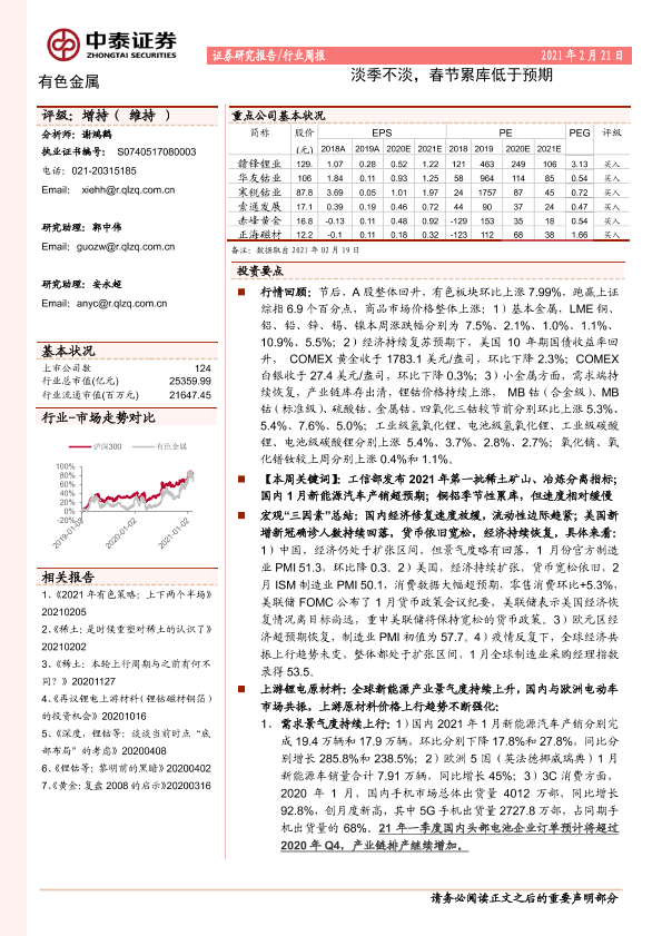 【中泰证券】【20210221】20210221-中泰证券-有色金属行业周报:淡季不淡,春节累库低于预期-39页