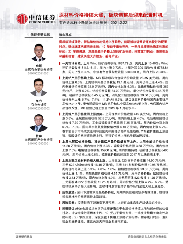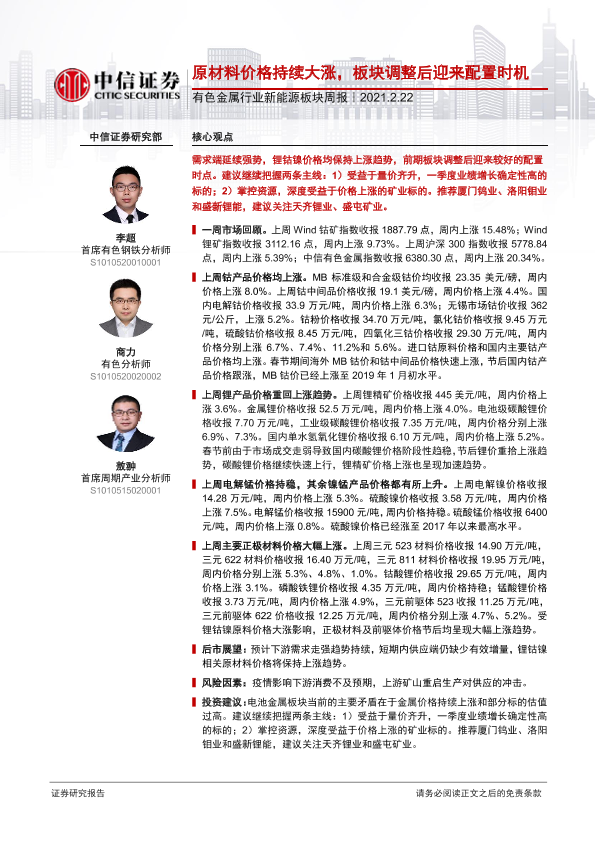 【中信证券】【20210222】20210222-中信证券-有色金属行业新能源板块周报:原材料价格持续大涨,板块调整后迎来配置时机-16页