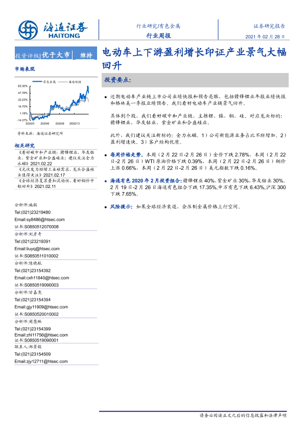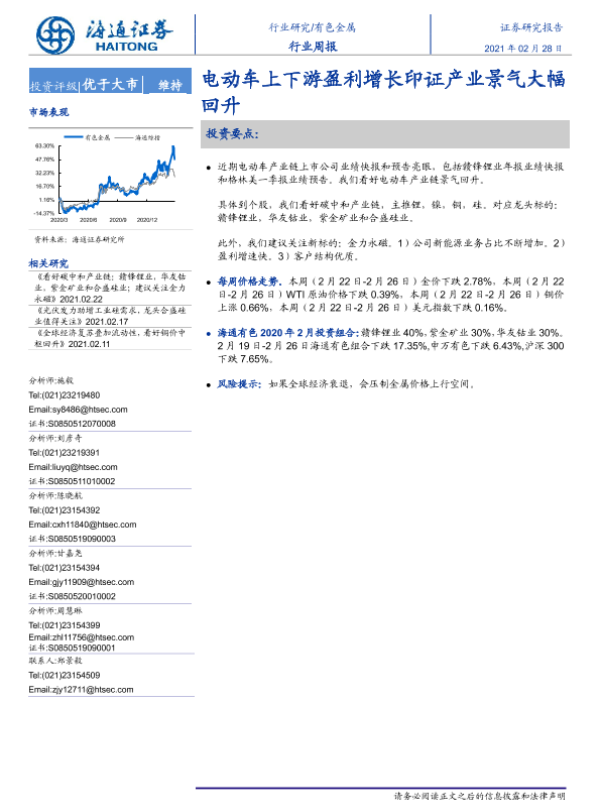 【海通证券】【20210228】20210228-海通证券-有色金属行业周报:电动车上下游盈利增长印证产业景气大幅回升-5页