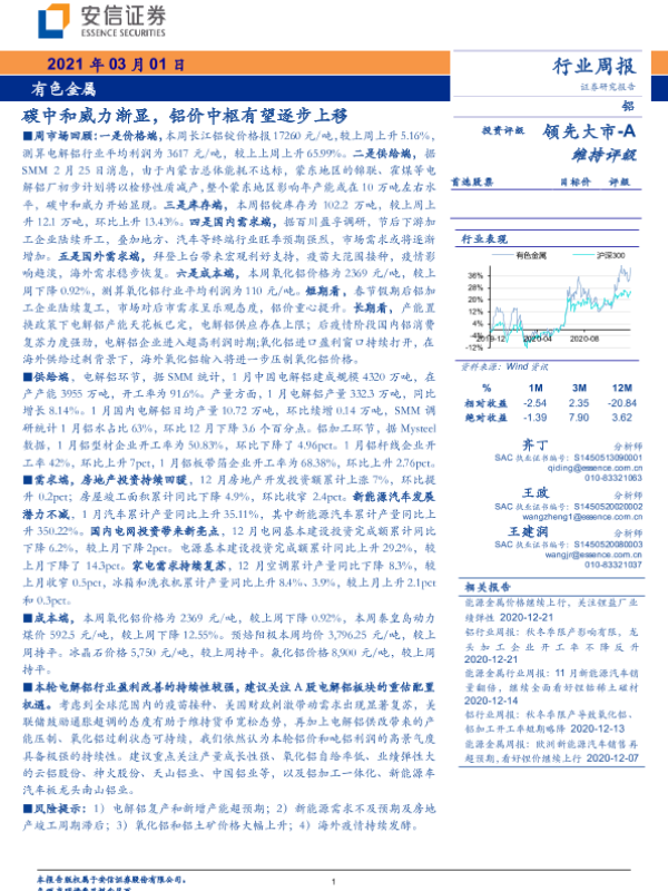 【安信证券】【20210301】20210301-安信证券-有色金属行业周报:碳中和威力渐显,铝价中枢有望逐步上移-23页