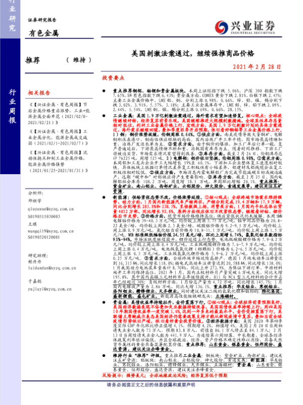 【兴业证券】【20210228】20210228-兴业证券-有色金属行业周报:美国刺激法案通过,继续强推商品价格-23页
