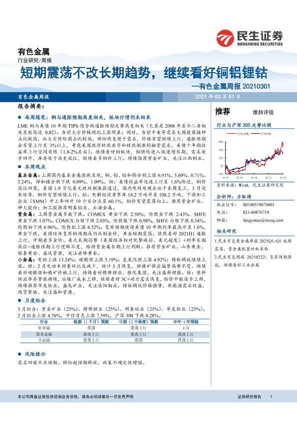 【民生证券】【20210301】20210301-民生证券-有色金属周报:短期震荡不改长期趋势,继续看好铜铝锂钴-18页