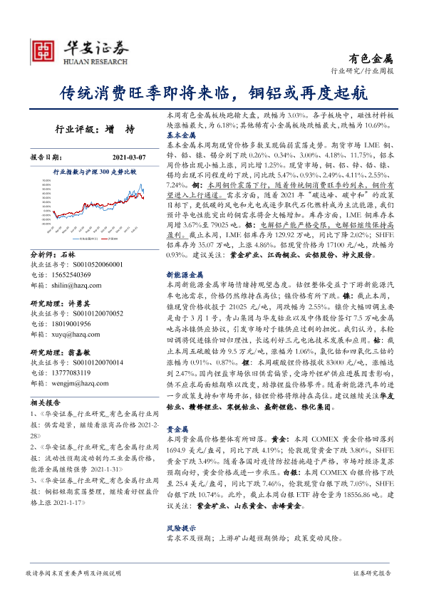 【华安证券】【20210307】20210307-华安证券-有色金属行业周报:传统消费旺季即将来临,铜铝或再度起航-13页