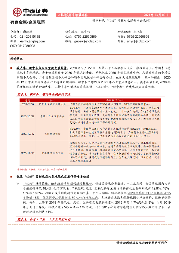【中泰证券】【20210309】有色金属 金属观察:碳中和及“双控”考核对电解铝冲击几何?-9页