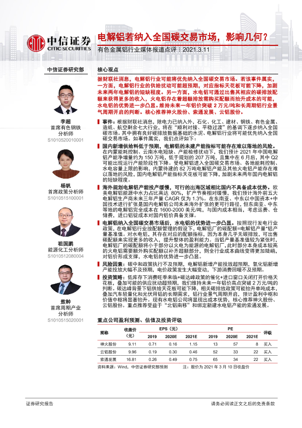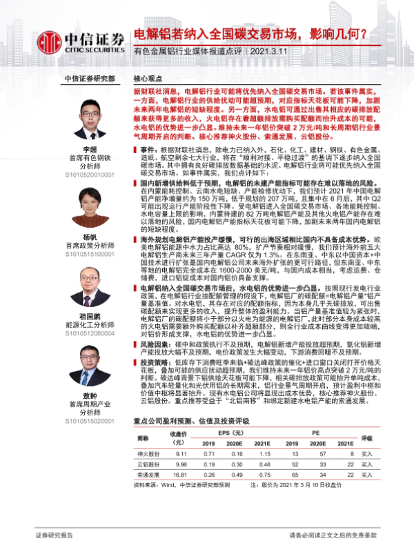 【中信证券】【20210311】电解铝若纳入全国碳交易市场,影响几何?-2页