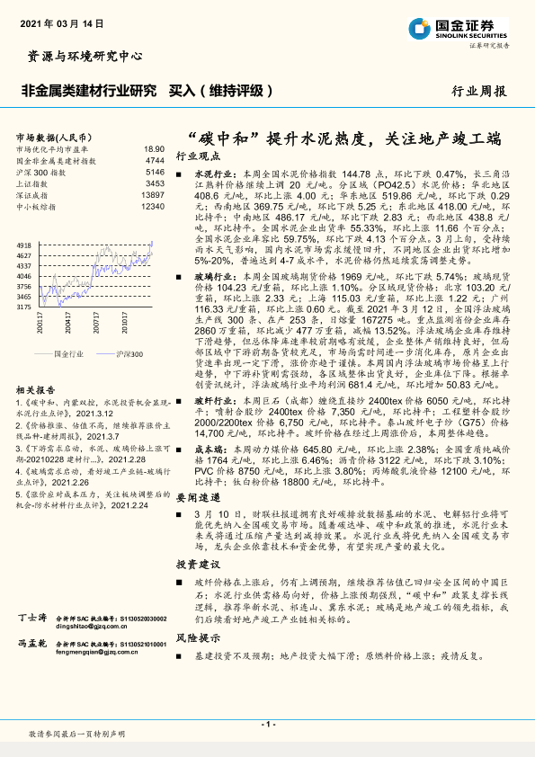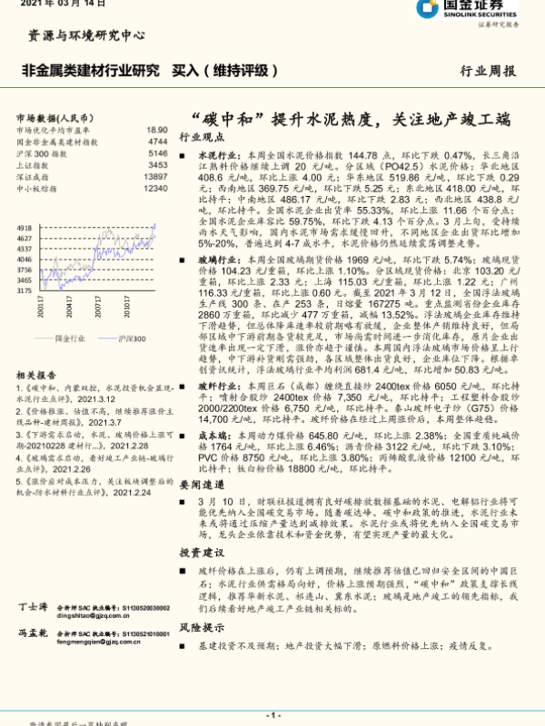 【国金证券】【20210314】非金属类建材行业研究:“碳中和”提升水泥热度,关注地产竣工端-8页