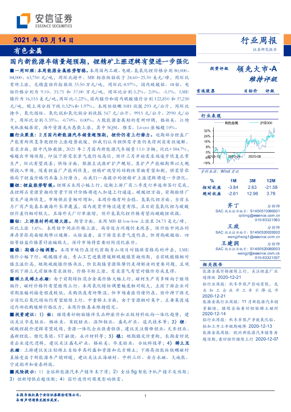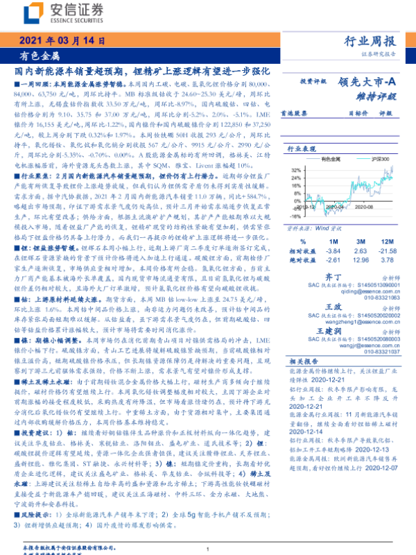 【安信证券】【20210314】20210314-安信证券-有色金属行业周报:国内新能源车销量超预期,锂精矿上涨逻辑有望进一步强化-25页