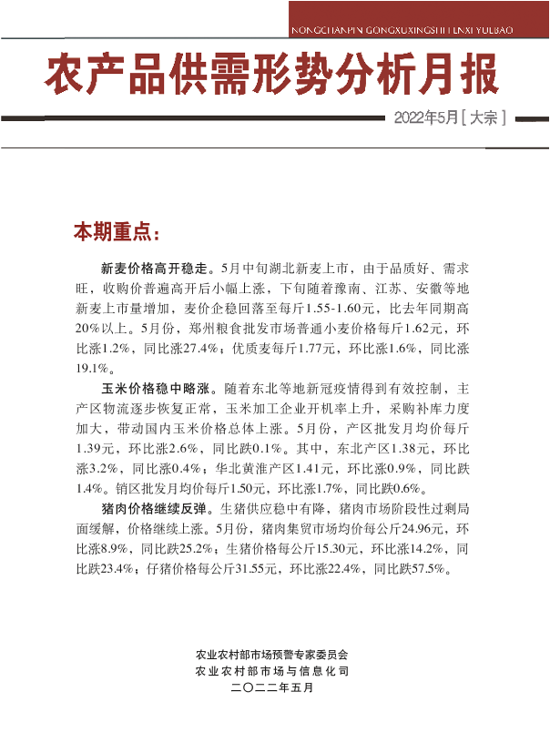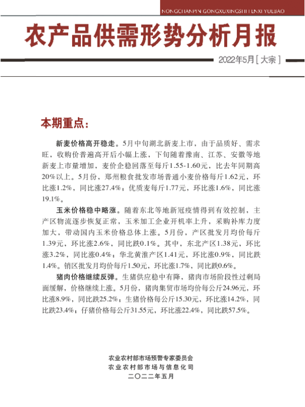 【农业农村部市场预警专家委员会】【202205】2022年5月大宗农产品供需形势分析月报-30页