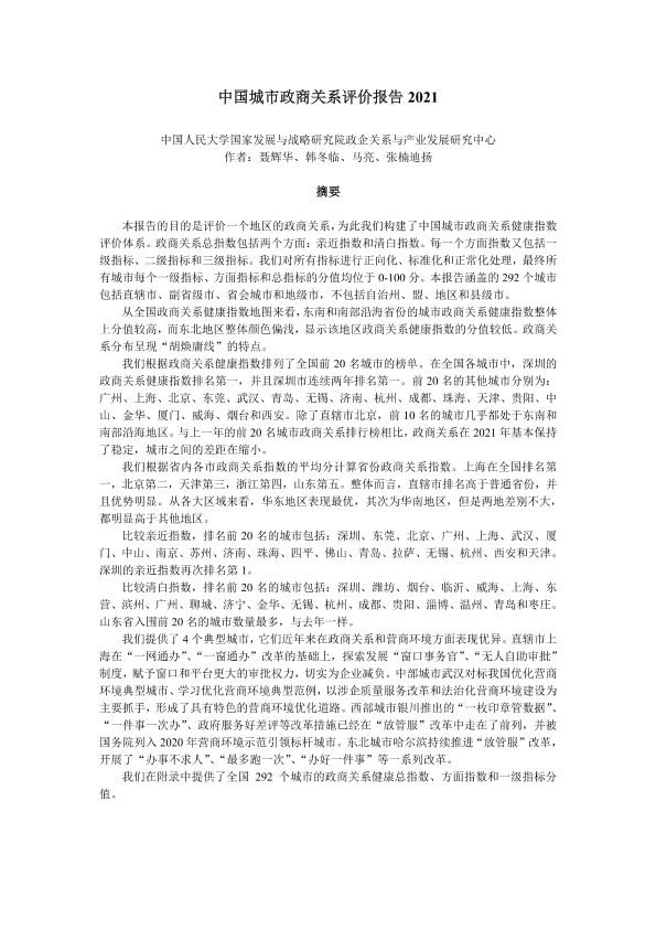 【中国人民大学国家发展与战略研究院政企关系与产业发展研究中心】【202206】中国城市政商关系评价报告2021-36页