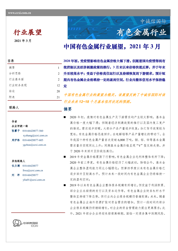 【中诚信国际】【202103】中国有色金属行业展望,2021年3月-2页