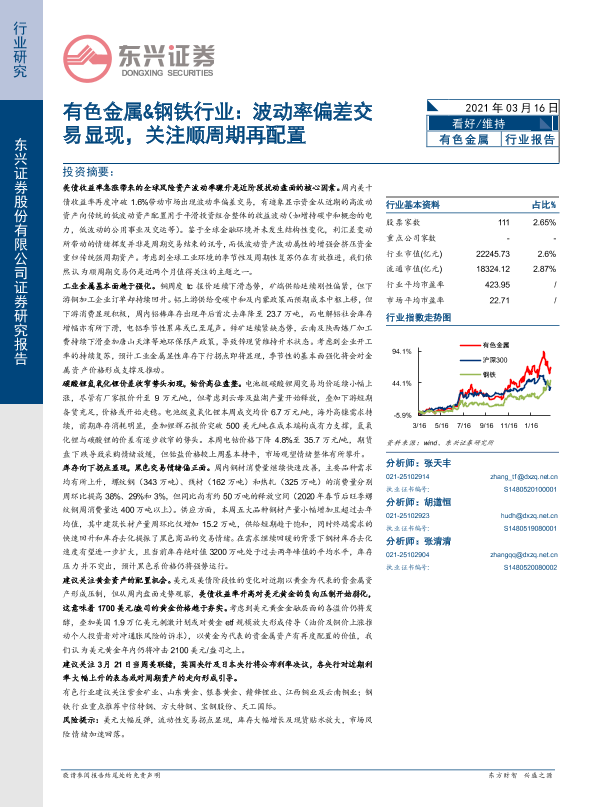 【东兴证券】【20210316】20210316-东兴证券-有色金属&钢铁行业:波动率偏差交易显现,关注顺周期再配置-23页