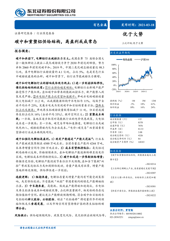 【东北证券】【20210318】碳中和重塑铝供给结构,高盈利或成常态-33页