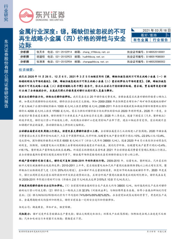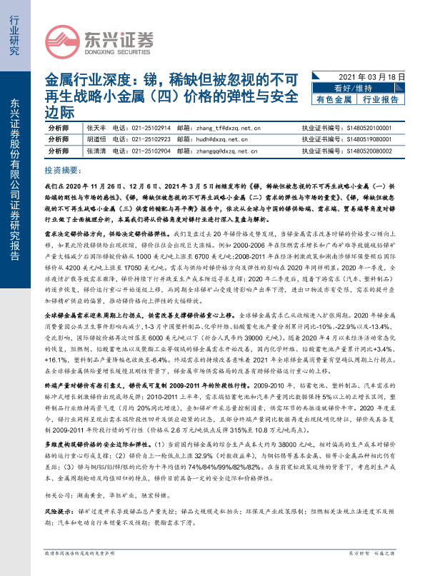 【东兴证券】【20210318】金属行业深度:锑,稀缺但被忽视的不可再生战略小金属(四)价格的弹性与安全边际-12页