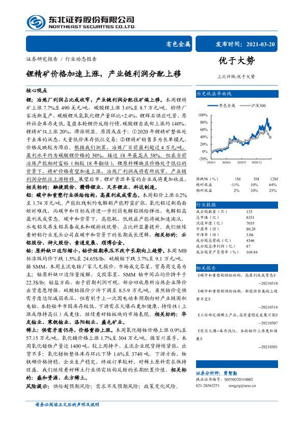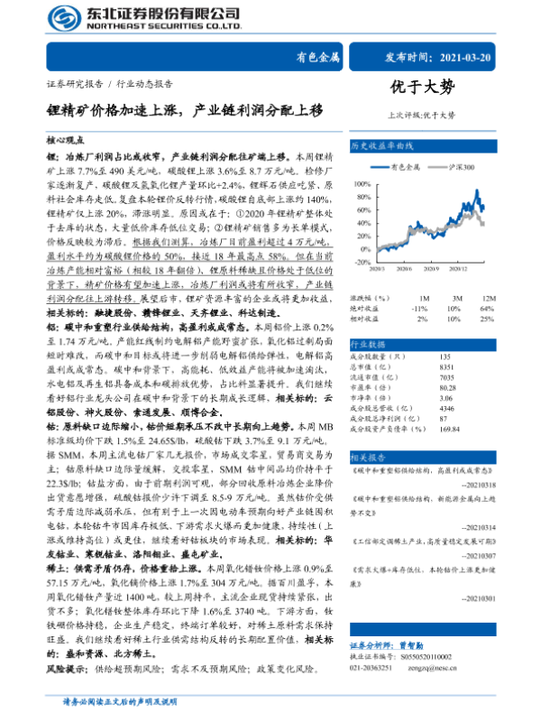 【东北证券】【20210320】锂精矿价格加速上涨,产业链利润分配上移-13页