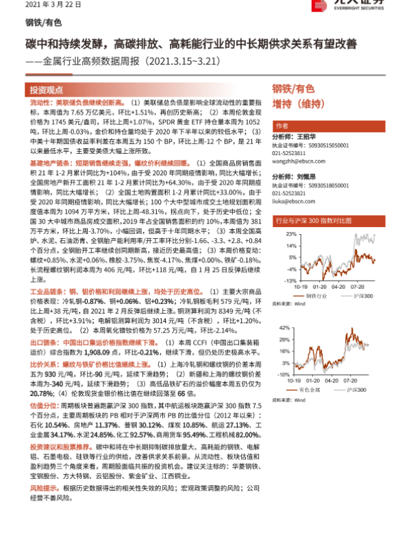 【光大证券】【20210322】金属行业高频数据周报:碳中和持续发酵,高碳排放、高耗能行业的中长期供求关系有望改善-15页