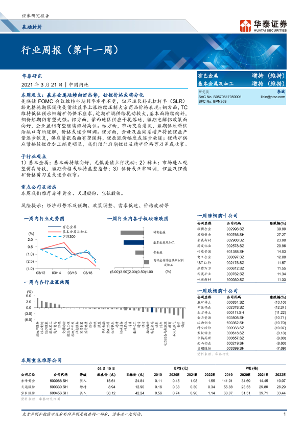 【华泰证券】【20210321】20210321-华泰证券-有色金属行业周报(第十一周)-15页