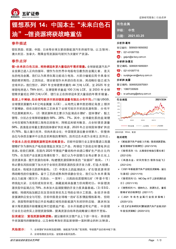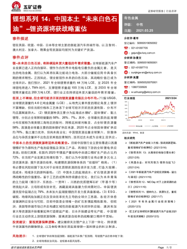 【五矿证券】【20210325】中国本土“未来白色石油”--锂资源将获战略重估-5页