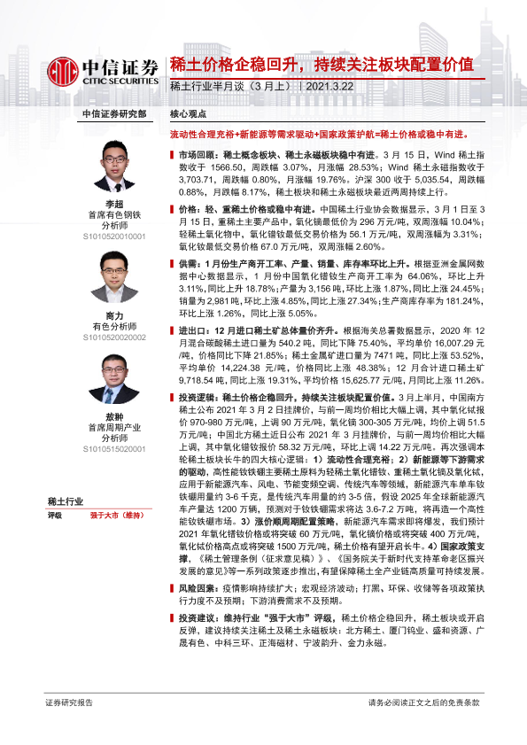 【中信证券】【20210322】稀土行业半月谈(3月上):稀土价格企稳回升,持续关注板块配置价值-35页