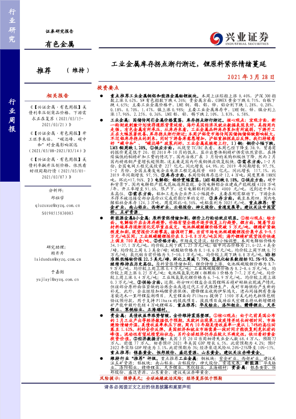 【兴业证券】【20210328】20210328-兴业证券-有色金属行业周报:工业金属库存拐点渐行渐近,锂原料紧张情绪蔓延-23页