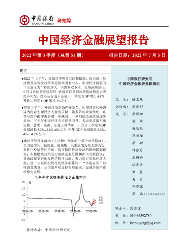 【中国银行研究院】【20220705】中国经济金融展望报告(2022年第3季度)-58页