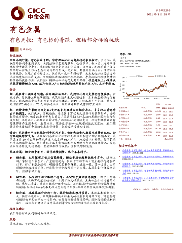 【中金公司】【20210328】20210328-中金公司-有色金属周报:有色标的普跌,锂钴部分标的抗跌-29页