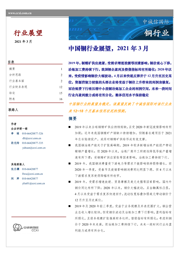 供需关系 信用状况 冶炼加工 铜价波动 铜行业