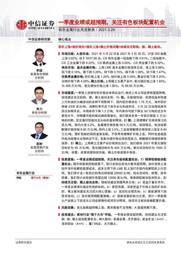 【中信证券】【20210329】20210329-中信证券-有色金属行业周度聚焦:一季度业绩或超预期,关注有色板块配置机会-17页